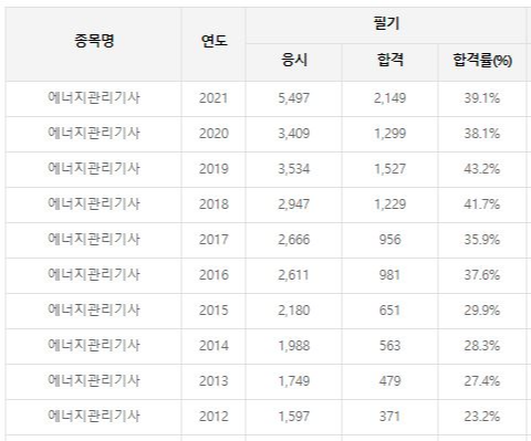 필기 합격률 경향