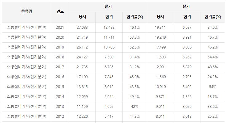 실기는 과거보다 많이 높아져서 40% 내외를 유지하고있습니다.